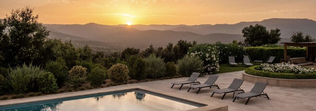 Just moments from the vibrant allure of Saint-Tropez, Le Mas de Faucon offers a serene escape steeped in Provençal charm. This meticulously renovated French farmhouse combines authentic character with modern refinement, creating an atmosphere of understated luxury. Set amidst rolling vineyards and majestic mountain backdrops, the property enjoys breathtaking views over the Gulf of Saint-Tropez. From sunrise to sunset, every moment here captures the timeless beauty of the Côte d’Azur.