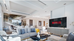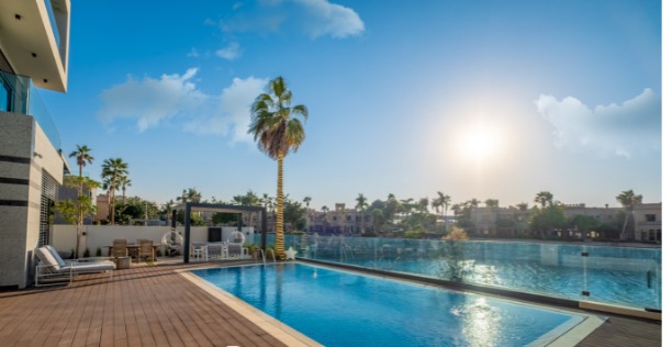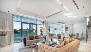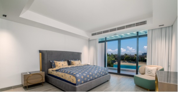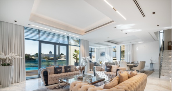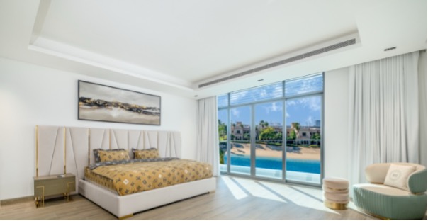This mansion offers tranquility and sophistication – a luxurious retreat located on the prestigious Palm Jumeirah. There are 6 king-sized bedrooms across three levels, a maid’s room, spacious living area, balconies and porches. The mansion boasts stunning views of the Palm Jumeirah and Atlantis, as well as ample space throughout.