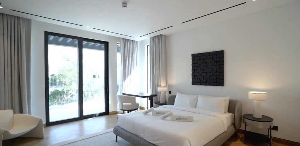 This stunning villa boasts exquisite interiors, spacious living areas, a fully equipped kitchen, four elegant bedrooms + maid’s room and premium finishing throughout. Enjoy a private pool, serene garden, and direct beachfront access for an unforgettable stay.
